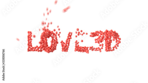 Word Love3D made out of shiny spheres on white background. Valentine's Day. 3D rendering.