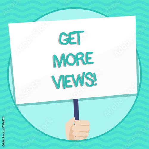 Word writing text Get More Views. Business photo showcasing Increase web traffic optimise blog strategy analyse digitally Hand Holding Blank White Placard Supported by Handle for Social Awareness