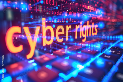 Words cyber rights for cyber law concept. Neural network generated image. Not based on any actual scene or pattern.