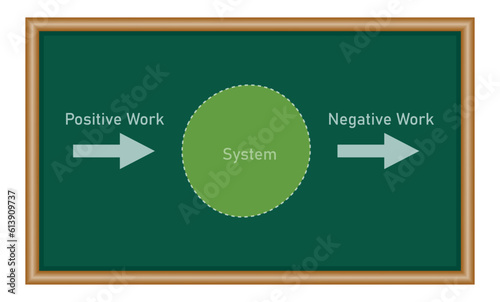 Work done on a system by an external force. Positive and negative work of system. Scientific vector illustration isolated on white background.