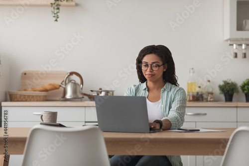 work, home, freelance, remote, manager, concentrated, nice, young, african american, woman, goggles, typing, laptop, minimalist, white, kitchen, interior, copy space, contraption, attractive, lady, job, living room, education, study, online, app, business, cyberspace, modern, indoor, lifestyle, comfort, cosy, apartment, domestic, blog, lesson, chat, health care, human, search, positive