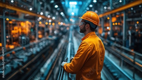 Worker in an industrial setting, observing operations.