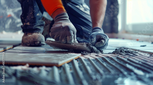 construction, tiling, men at work, manual labor, adhesive, construction site, glove, craftsmanship, indoor