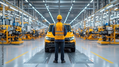 men at work, factory, production, vehicle, assembly, safety, equipment, manufacturing, yellow, industrial, technology, machinery, helmet, inspection, process, environment, teamwork, labor, transport, facility, organisation, tool, safety-gear, workshop, engineer, modern, logistic, infrastructure, male, standing, profession, planning, operation, innovation, car, design, automation, assembly line, observation, quality, assembly line, management, career, system, workflow, structure