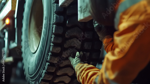 men at work, tire, inspection, industrial, glove, safety, maintenance, equipment, wheel, heavy duty, construction, vehicle