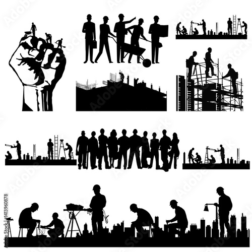 people, silhouette, vector, illustration, woman, family, business, children, couple, fitness, art, dance, love, city, black, boy, person, design, labor, labour day, icon, logotype, men at work, transparent