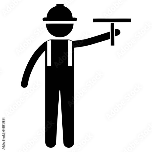 Worker Silhouette With Hard Hat Holding T Square Construction Engineering