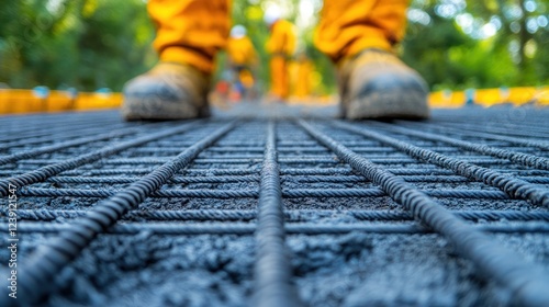 construction, men at work, concrete, rebar, reinforcement, outdoors, safety-gear, teamwork, building, infrastructure, labor, tool, craftsmanship, daytime, site, project, stability, industry, material, structure, engineering, boot, process, groundwork, durability, urban, productivity, heavy equipment, foundation, preparation, landscape, fabrication, task, inspection, planning, resource, technique, innovation, regulation, job site, efficiency