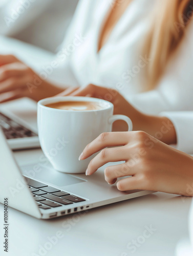 Working at a Business lady's laptop with a cup of coffee.