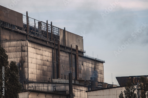 Working old factory during production. Emissions of harmful substances into the atmosphere pollution.