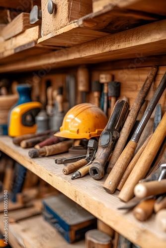 tool, workshop, carpenter's shop, carpenter's shop, craft, shelf, wood, equipment, craftsmanship, hammer, chisel, plane, mallet, safety, helmet, industry, manufacturing, construction, building, design, profession, occupation, skill, trade, artisan, hand-made, creativity, manual, labor, work, job, career, business, production, project, task, detail, precision, accuracy, quality, expertise, mastery, technique, process, result, achievement, effort