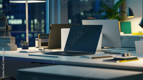 Workspace in a room with a laptop. laptop on a desk in a home office