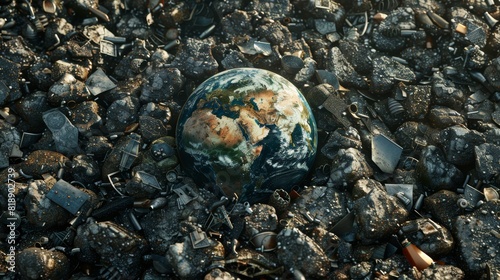 World Environment Day. Aerial top view garbage dump with globe earth concept let's save the nature of the planet