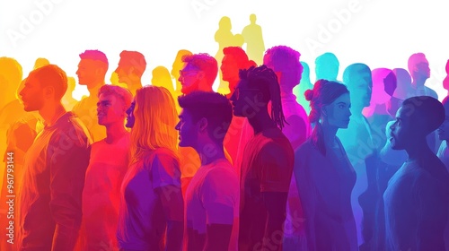 diverse, community, inclusion, equality, representation, pride, identity, acceptance, celebration, colourful, oneness, support, empowerment, solidarity, individual, difference, love, harmony, belonging, symbol, population, varied, sex, spectrum, movement, right, activism, relationship, progress, expression, freedom, creativity, illustration, concept, technology, digital, virtual, abstract, future, innovation, artificial intelligence, visualisation, design, modern, futuristic, human rights