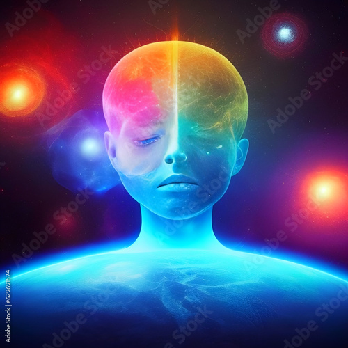 mind, head, brain, woman, face, art, light, body, science, three-dimensional, energy, person, beauty, digital, illustration, power, design, space, human, earth, nose