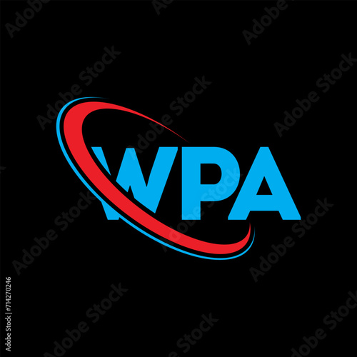WPA logo. WPA letter. WPA letter logo design. Initials WPA logo linked with circle and uppercase monogram logo. WPA typography for technology, business and real estate brand.