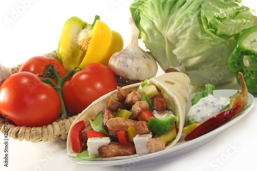 wrap, salad, paprika, garlic, spring roll, tortilla, onion, donut, meat, chicken, role, cheese, fowl, stuffing, tomatoes, snack, mexican, healthy, fresh, sharp