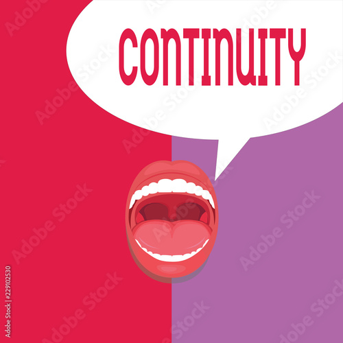 Writing note showing Continuity. Business photo showcasing Unbroken consistent existence operation of something over time.