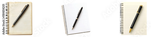 Writing pad with pen isolated on transparent background, Set of