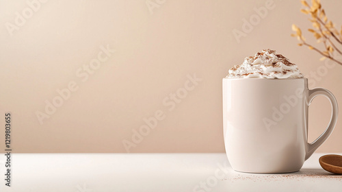 Wärmender Kaffeegenuss mit Sahnehaube in minimalistischer Umgebung