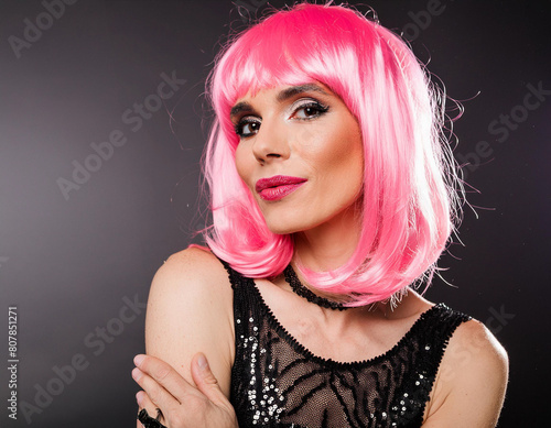 wunderschöne Drag queen mit Perücke kämpft für LGBTQ Rechte