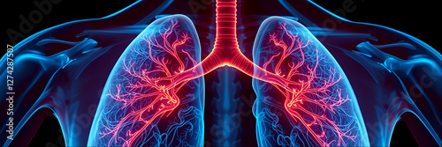 X ray human body anatomy of lung respiratory system Clinical Biology Disease Medicine Injury Healthcare 3D illustration banner