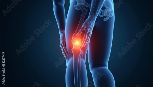 x, ray, like, three-dimensional, render, person, holding, their, painful, knee, pain, point, visible, ai, generative, body, anatomy, x-ray, human, medicals, bone, joint, health, spine, woman, science, medicine, skeleton, muscle, injury, blue, back, leg, illustration, biology, sport, arthritis