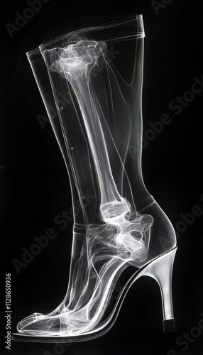 shoe, high, heel, x-ray, anatomy, footwear, profile, transparent, design, fashion, skeleton, structure, side, view, elegant, modern, stylish, detail, art, image, illustration, medicals, technology, visual, creative, unique, black, background, light, shadow, curve, form, silhouette, of, height, accessory, artistic, clarity, contrast, photo, luxury, chic, contemporary, material, representation, detailed, innovative