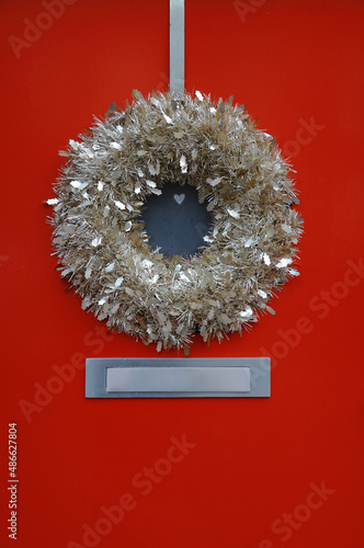 celebration, christmas, circle, circular, decoration, decorative, door, festive, hanging, mailbox, merry, ornament, red, round, seasonal, shiny, chaplet, christmas