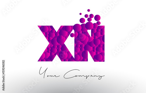 XN X N Dots Letter Logo with Purple Bubbles Texture.