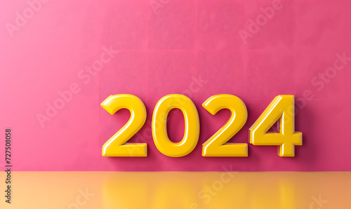 Yellow 3d rendering 2024 text on pink background, Generative AI