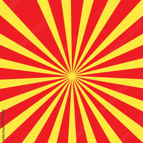 Yellow and red banner with Sun rays, yellow comic background.