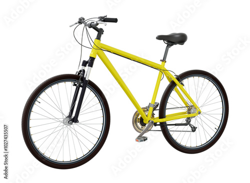 bicycle, yellow, sport, side, view, mountain, isolated, transportation, vehicle, frame, wheel, bike, tire, background, colours, transport, nobody, transparent, leisure, cycle, recreational, single, object, professional, road, mountain bike, offroad, exercise, gear, riding, cut-out, black, biking, cycling, racing, cross, country, aluminium, activity, brake, saddle, fitness, new, absorber, gearlever