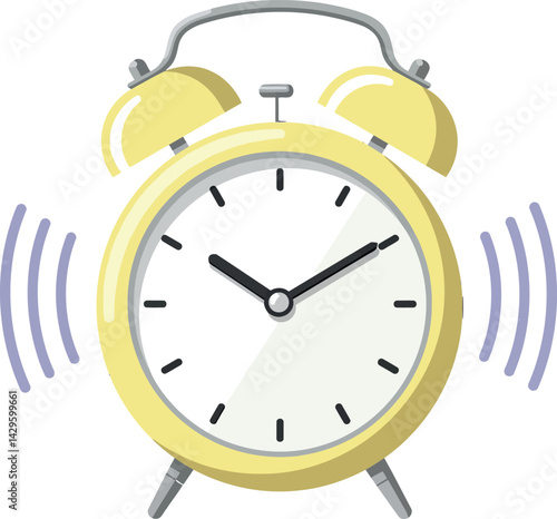 Yellow Classic Alarm Clock Ringing Vector Illustration with Sound Waves