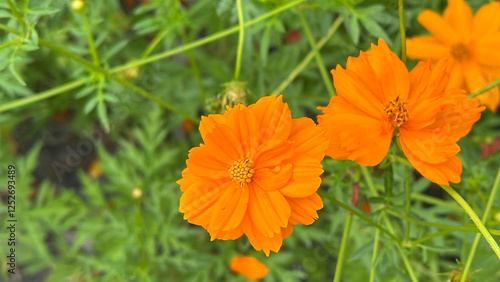 Yellow color flower, sulfur Cosmos, Mexican Aster flowers are blooming beautifully springtime in the garden, blurred of nature background