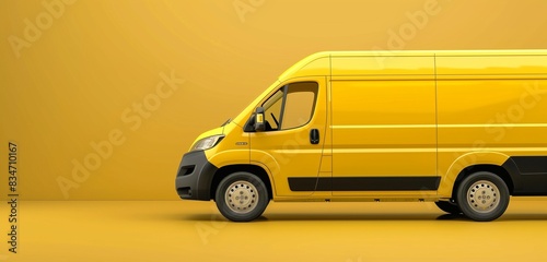 Yellow compact van half side view with ample copy space on commercial background for business vehicle ads