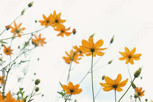 yellow, cosmos, flower, closeup, white, nature, floral, isolated, green, leaf, blooming, spring