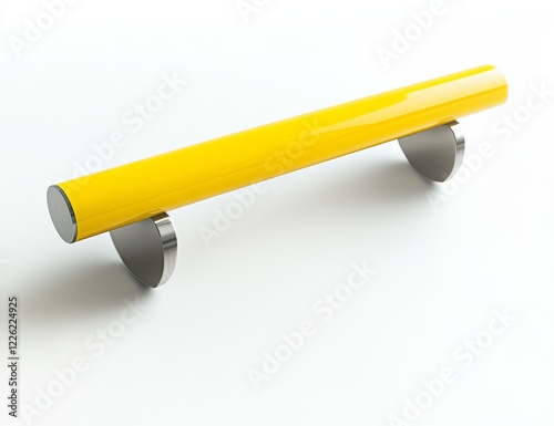 handle, yellow, cylindrical, stainless, steel, background, white, modern, design, furniture, interior, decor, home, office, hardware, accessory, grip, support, bar, rail, element, detail, object, component, fixture, fitting, attachment, bright, colours, glossy, smooth, polished, clean, minimalist, simple, contemporary, stylish, elegant, luxury, quality, hard-wearing, strong, robust, aesthetic, attractive, appealing, functional, practical