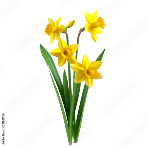 daffodil, daffodil, narcissus, yellow flower, yellow, spring flower, spring, flower, bouquet, bunch, floral, blossom, bloom, flower petals, green leaf, nature, plant, botany, beauty, vibrant, cheerful, bright, sunny, joyful, elegance, freshness, delicate, illustration, graphic, digital artwork, wallpaper, background, closeup, macro, isolated, black background