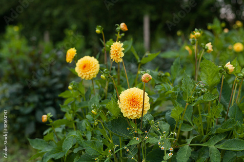 dahlia, yellow, flower, garden, green, chrysanthemum, dahlia, autumn, blossom, nature, plant, bloom, floral, bud, flora, head, botany, colours, leaf, pretty, natural, botanical, beautiful, colourful, colours, flower garden, flowerbed, rhizome, summer