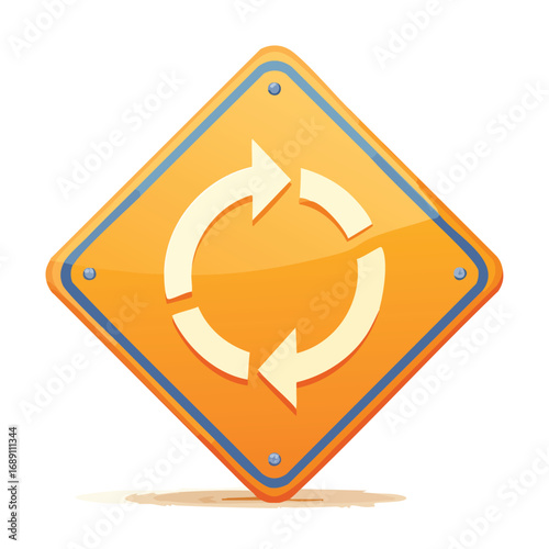 Yellow Diamond Roundabout Traffic Warning – AI Generated