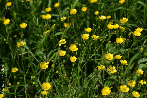 Yellow flowers. Rannculus acris. Field. Buttercup caustic, common type of buttercups
