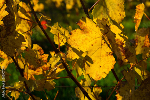 yellow grape leaves on young vine plants, october