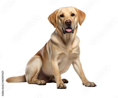 Yellow labrador retriever dog sitting on a transparent background, isolated