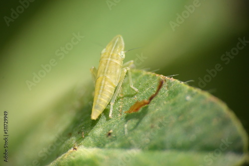 Yellow leafhopper on a leaf in a field in Cotacachi, Ecuador