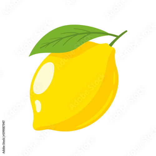Yellow lemon isolated on white background. Flat style. Vector illustration
