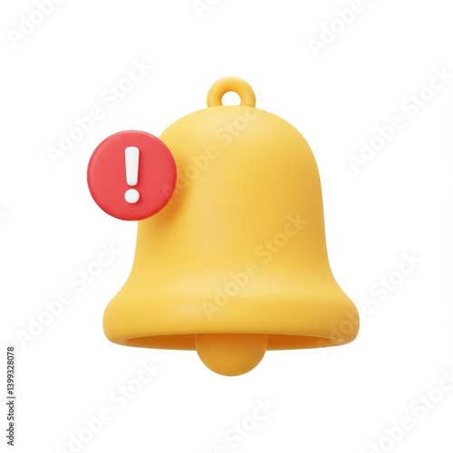 Yellow notification bell with alert on white background