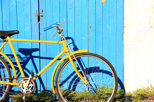 aged, antique, architecture, background, beautiful, bicycle, bike, black, blue, brick, bright, building, city, classic, cycle, bicyclist, decorate, decoration, design, dirty, dust, fashioned, floor, grunge, leaning, light, metal, old, retro, rust, rust-eaten, sport, racked, stone, street, style, sunshine, tire, transport, transportation, travel, urban, vintage, wall, wheel, wood, wooden, yellow