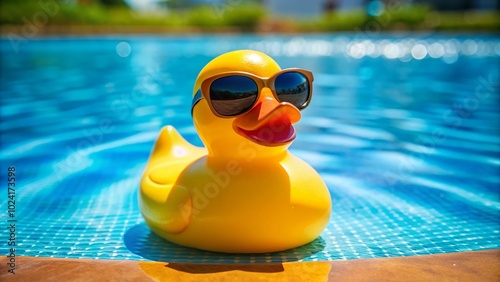 rubber duck, sunglasses, summer, pool, cute, playful, fun, relaxation, water, float, beach, children, leisure, happy, vivid colors, whimsical, novelty, sunny day, cheerful, aquatic, summer fun, home decor, gift, casual attire, bright, vibrant, tropical, summer, joyful, inflatable
