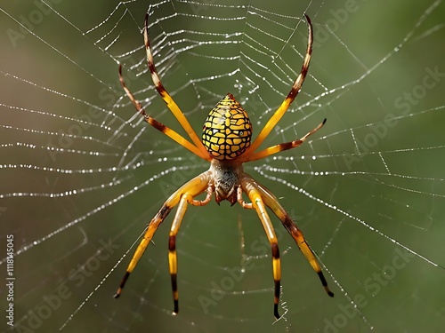spider, web, orb, yellow, black, leg, abdomen, nature, insect, arachnid, invertebrate, 8, eye, dew, droplet, morning, sun, light, garden, forest, background, green, wildlife, animal, creepy, crawly, scarey, tiny, small, intricate, pattern, design, silk, sticky, hunt, predator, prey, wild, beautiful, amazing, fascinating, macro